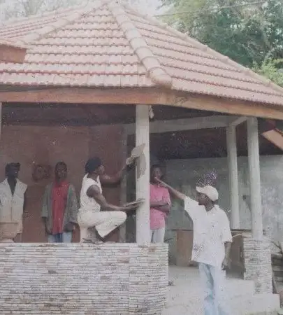 Une paillote construite à Cotonou, quartier « Camp-Ghézo » en 2006 a été embellie avec des pierres croissistes. Sa charpente a été revêtue d’une tuile de marque Italienne.